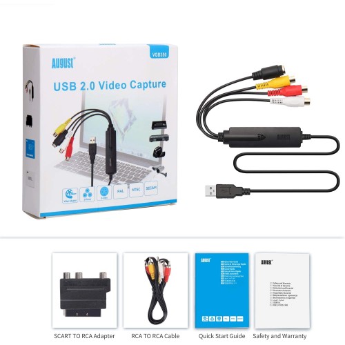 Το August VGB350 είναι ένας USB δέκτης ήχου-βίντεο για υπολογιστή, για την ψηφιοποίηση των δεδομένων σας γρήγορα και εύκολα. Αφού συνδέσετε τον υπολογιστή σας μέσω της διεπαφής USB 2.0, μπορείτε να συνδεθείτε σε ένα CD player, DVD player, VCR, DV, V8 ή άλλη συσκευή AV με S-video ή S-VHS.