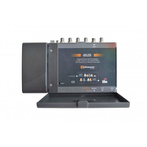 The 6520 offers 4 super-selective SAW filters in one compact sized zamak diecast housing. These filters can be used to convert 4 digital terrestrial channels to another frequency in the UHF band. Of course it can also be used as a super-selective single-channel filter in case a normal UHF filter is not sufficient (e.g. strong interference from an LTE source, or adjacent channel interference).