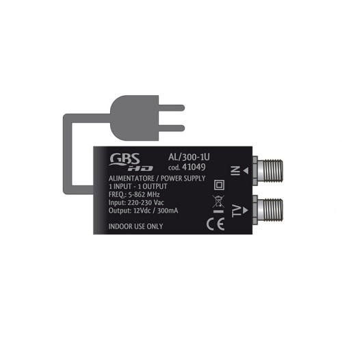 Jolly line 41049 - AL/300 1U is a power supply with 1 output. It can work ideally with Jolly line 45129 - CST/VU2 2OUT Mast Amplifier LTE/4G.