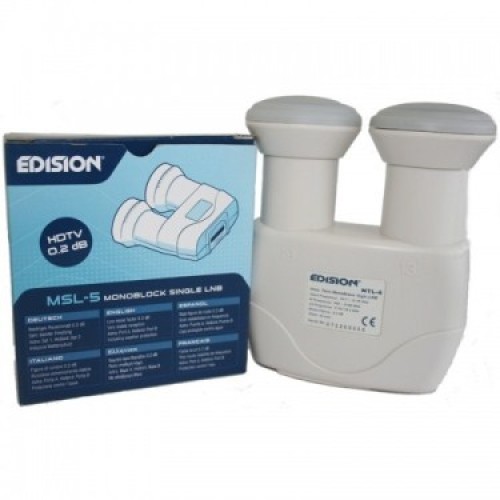 The MSL-5 SINGLE MONOBLOCK is a Single LNB EDISION MSL-5 for 2 Satellites with integrated DiseqC.