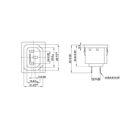 GBC 22.0306.05 - Three-pole IEC C14 ac panel male plug with switch