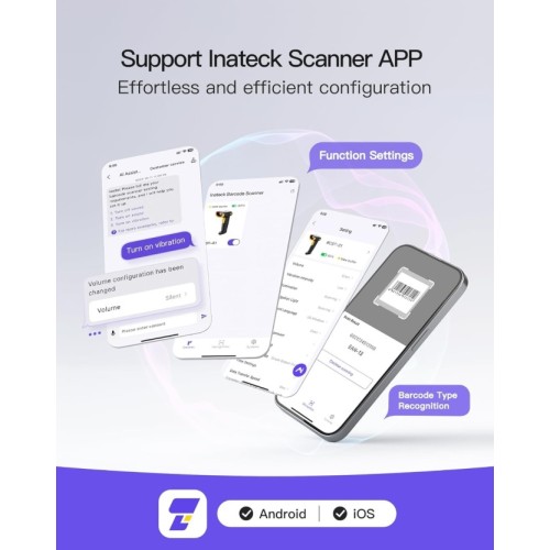 - Supports Inateck app – Configure settings, view battery status, and manage scanning preferences via the official app.