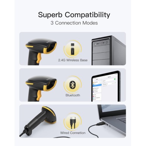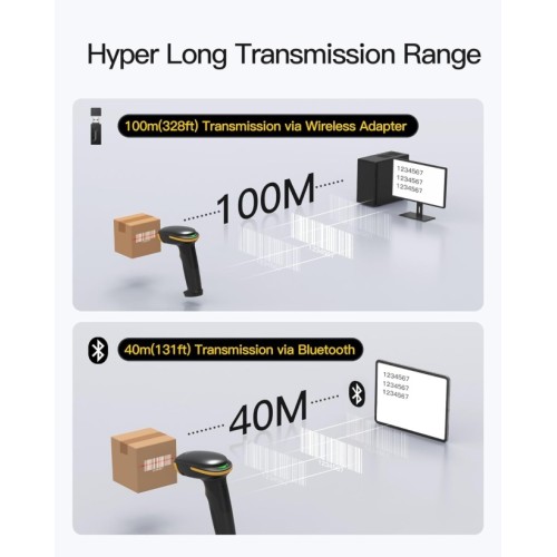 Bluetooth & Wireless Barcode Scanner 2.4 GHz, 1D scanning