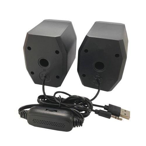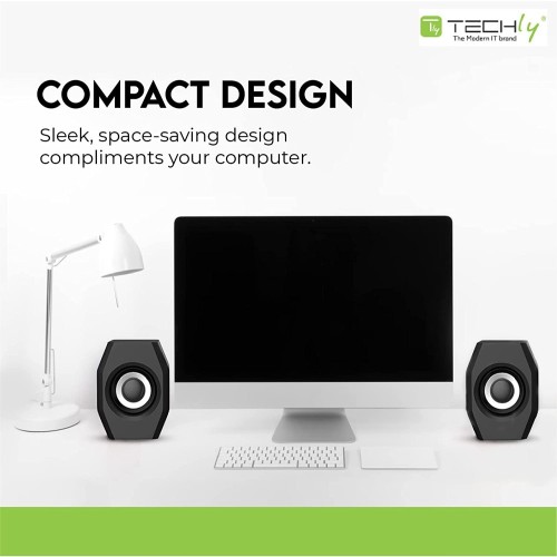 Techly ICC SP-320STY are USB 2.0 powered desktop speakers. Perfect audio speakers for any type of environment such as home and office or ideal for traveling thanks to their small size. Simply connect your devices via the 3.5mm AUX input for audio playback and USB for power. Built-in volume control on the power cable for easy adjustment of your music.