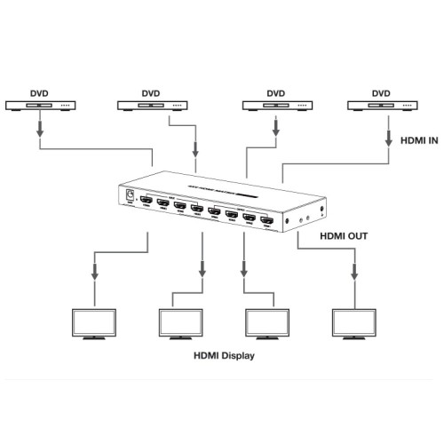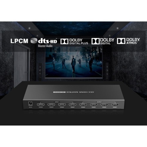 Supports 4 HDMI inputs and 4 HDMI outputs