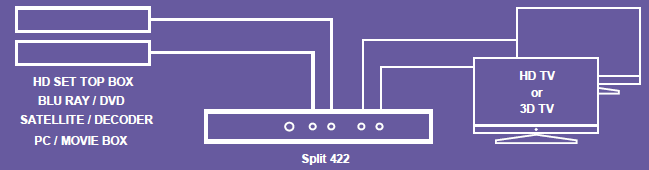 - Enables image and sound from your HD satellite receiver, set-top box, games console or Blu-ray Player to be simultaneously shown on 2 screens (HDTV or HD projector).