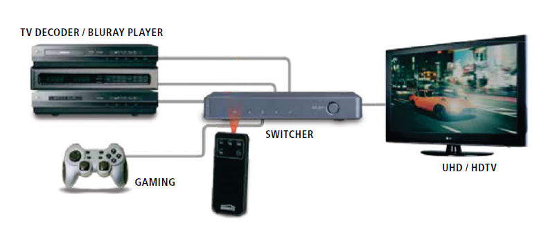 HDMI switch with 4K60 (4:4:4) UHD|HDCP 2.2UHD - 4 in/ 1 out
