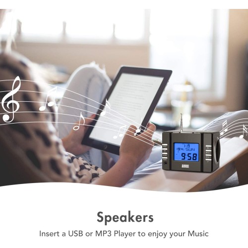 August MB300H - Mini MP3 Musicbox with FM Clock Radio Black