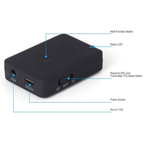 The August MR260 is a device that works like a Bluetooth Transmitter where you can connect your Bluetooth headset or speakers via an audio cable to any audio source such as TV, computer, radio, etc. and have a very good stereo sound. It also works as a Bluetooth Receiver where you connect your headphones or speakers where there is no Bluetooth to a Bluetooth TV, smartphone or tablet, just plug their audio cable into the MR260 and start listening wirelessly.