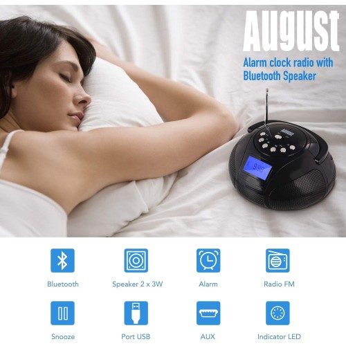 - August SE20B - Portable Radio with Bluetooth Speaker Black