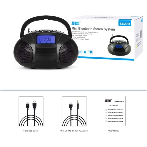 August MB300HMini MP3 Musicbox with FM Clock Radio Black With a stylish look and high-quality sound,..