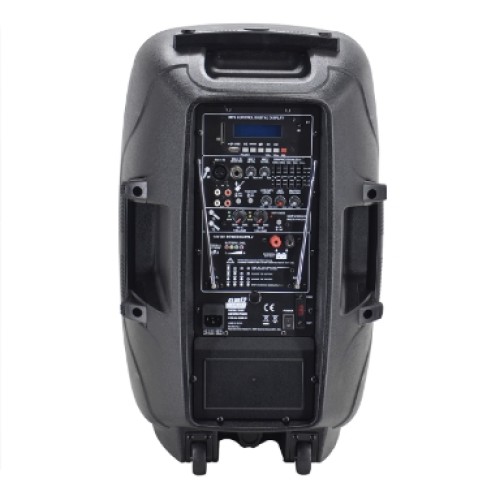 Active-Amplified 2-way speaker with built-in BT for streaming audio from PC, Smartphone and Tablet. USB and SD port for reading MP3 files. Easy to carry with built-in trolley and built-in battery, durable and compact, perfect for parties and entertainment with remote control and 2 microphones included