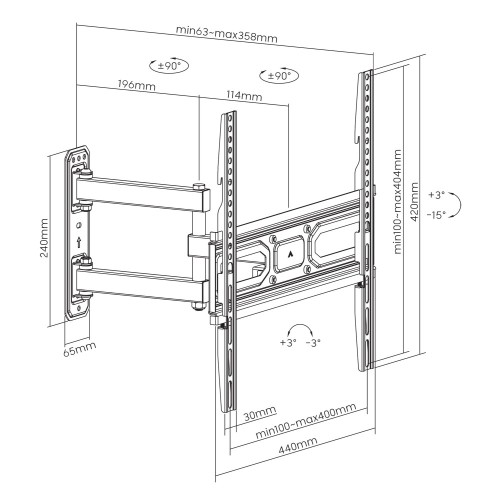- Supports TVs with a distance from the wall of 63 to 358 mm