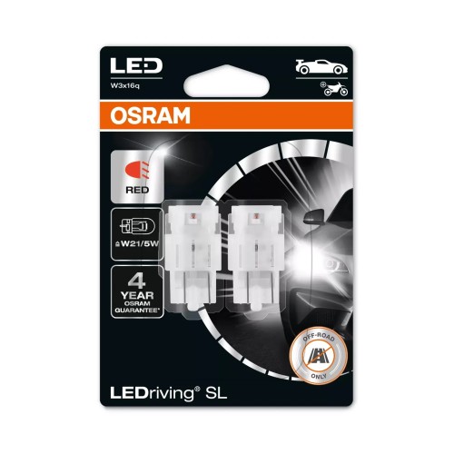 LEDriving SL W21/5W replacement lamps offer a modern and intense light. These replacement lamps are suitable for all conventional W21/5W lamp bases. In comparison to standard lamps, these LED retrofit lamps use up to 80% less energy. OSRAM offers a 4 year guarantee for these LEDriving SL lamps.