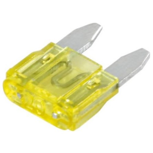 GBC 25.2650.20 Blade Minifuse 20A/32V/Yellow 5pcs .Suitable for protecting electrical and electronic systems in cars and campers.Transparent, colored plastic body. Rated voltage: 32V DC