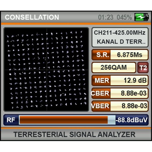 Terr Constellation: QPSK, 16QAM, 64QAM (DVB-T) 256QAM (DVB-T2)