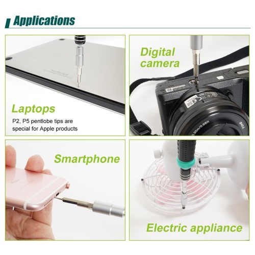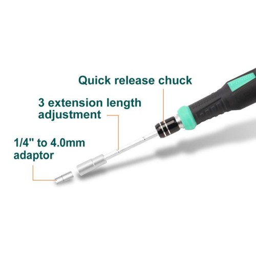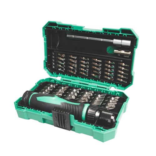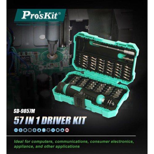 Proskit SD-9857M is a set of 57 Screwdrivers with a smooth rotating cap for fast and easy screwing/unscrewing.
