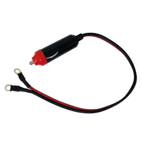 Cigarette lighter plug with 25cm cable with ring terminals for inverter.