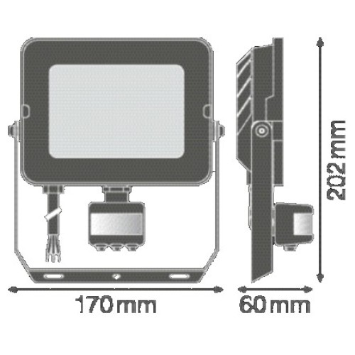 The LEDVANCE OSRAM Floodlight FL COMP 50W/4000K Sensor SYM BK IP65 is a projector type luminaire ,with sensor, ready for connection as it includes and a pre-installed cable of about 1 meter.