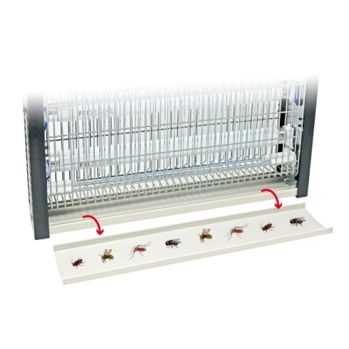 The low power 2x10 watt UVA lamp is a strong attractant for flying insects in the evening and at night. Flies, moths, mosquitoes and other insects are then struck by the high-voltage metal grids and fall onto the removable tray at the bottom of the lamp which can then be removed for cleaning. Suitable for domestic environments, such as bedrooms, living rooms, kitchens and, in general, wherever there may be the presence of flying insects in the evening and at night, with a maximum coverage of approximately 80m². Use the appliance away from other light sources and in a visible position to be easily identified by mosquitoes and other flying insects. It has no impact on the environment, it does not use any chemicals or pesticides, sprays, powders, vapours. It is silent and effective, and harmless to people and animals. Reduced consumption. It can be positioned on the support base or suspended with the special hook.