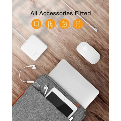 The Inateck 360° Protection 14″ Laptop Sleeve is a premium protective sleeve designed to protect your laptop from everyday bumps, scratches, and light moisture. With full 360° coverage, a splash-resistant exterior, and a soft interior lining, this sleeve provides reliable protection for devices up to 14″, including MacBook, Surface, Dell, HP, and other popular brands. A convenient front accessory pocket lets you carry chargers, cables, and small essentials, making it ideal for work, school, or travel.